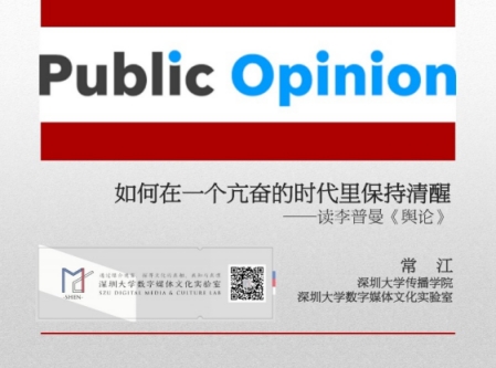 常江教授是深圳大学特聘教授,博士生导师,主要研究方向有媒介文化研究、数字新闻学、视听传播研究等,著有《中国电视史》《数字时代的新闻业:文化视角与欧美经验》《从经典到前沿:欧美传播学大师访谈录》多本译著。本期研读书目:李普曼《舆论》的中文译本即出自常教授之手。李普曼的《舆论》是传播学领域的奠基之作,它第一次对舆论做了全景式的描述并提出了著名的“拟态环境”理论,更涵盖了后期多个学术理论的理论渊源,至今仍保有新闻传播学领域的权威地位。