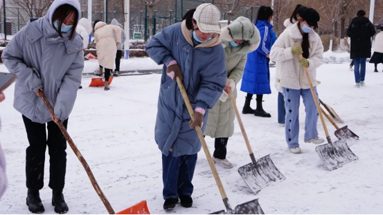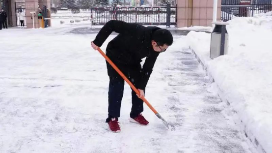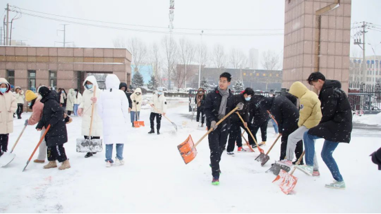 老师们和青年党员们不畏严寒,在清除积雪的同时,也用实际行动奋力弘扬和践行了社会主义核心价值观。他们用自己最朴素的方式履行了共产党员的职责和义务,树立了“一名党员、一面旗帜”的良好形象。