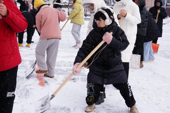 寒风中,他们手持扫雪工具,在学院老师的统一指挥下,对学校主干道路进行扫积雪、铲冰层、清杂物、除路障。