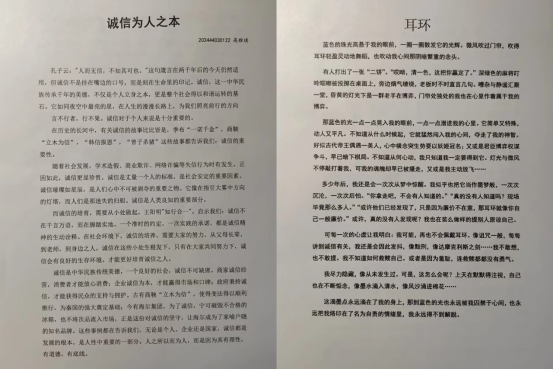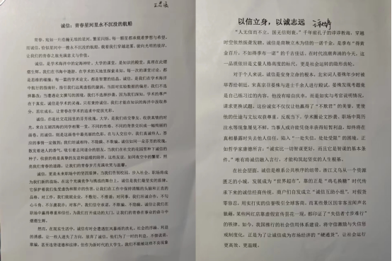 活动一经发起,便得到同学们的热烈响应一篇篇饱含真情的文字纷至沓来,字里行间流淌着对“诚信”的深刻思考与真切感悟。征文展示