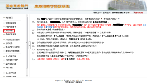注:续贷学生需要登录学生在线服务系统提交本人续贷申请声明,并且每年至少两次登录学生服务在线系统否则将影响续贷。