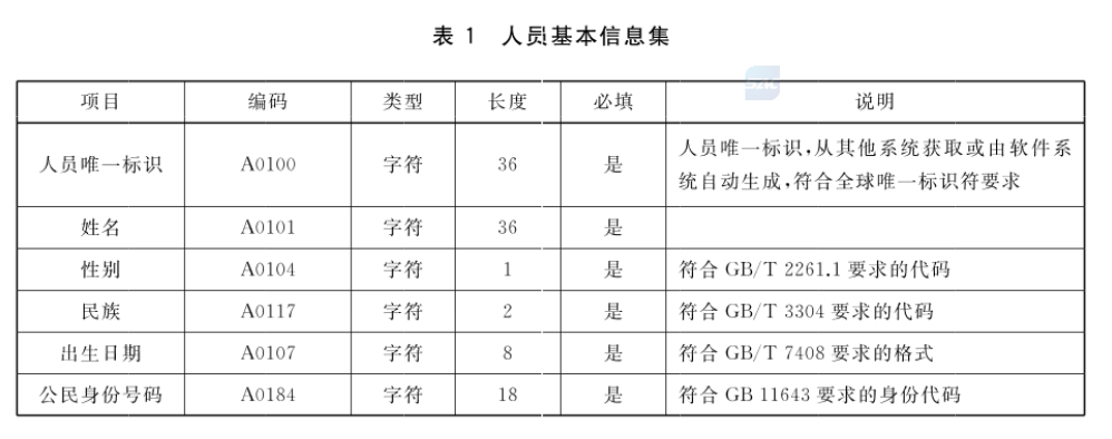 该信息集为单记录信息,每一记录对应一个人。至少由6个信息项(见表1)组成,其他信息项可根据实际情况增加。该信息集内容可单独建立,也可从其他系统中获取。