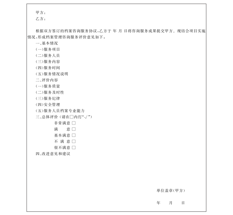 6.1.4 承包方的工作指导、意见建议应具有针对性、可操作性,符合发包方实际情况,应跟踪指导发包方咨询意见建议的实施,出具档案管理咨询服务报告。