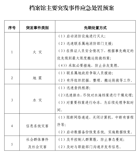 二、组织救援遇险人员,转移和妥善安置受威胁档案。迅速控制危险源,标明危险区域,关闭和限制使用有关设备、 设施,采取防止发生次生、衍生事件的必要措施。