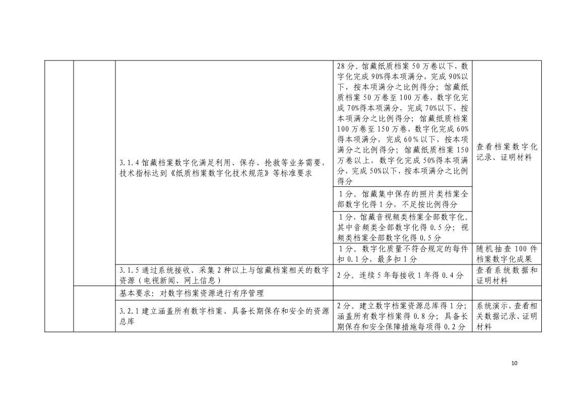 第四条 数字档案馆系统测试依据是《数字档案馆系统测试指标表》(见附件 1,以下简称《测试指标表》),测试采用百分制。测试结果达到80分以上认定为“通过国家级数字档案馆测试”,达到90分以上认定为“全国示范数字档案馆”。