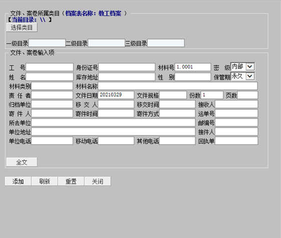 6.“密级”统一填写“内部”,“保管期”统一填写“永久”。