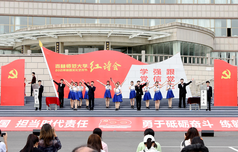 616日,庆祝中国共产党成立100周年校园文化艺术节之“学党史 强信念 跟党走”红诗会总决赛在图书馆前夫子广场举行。学校相关部门负责人、部分师生参加活动。
