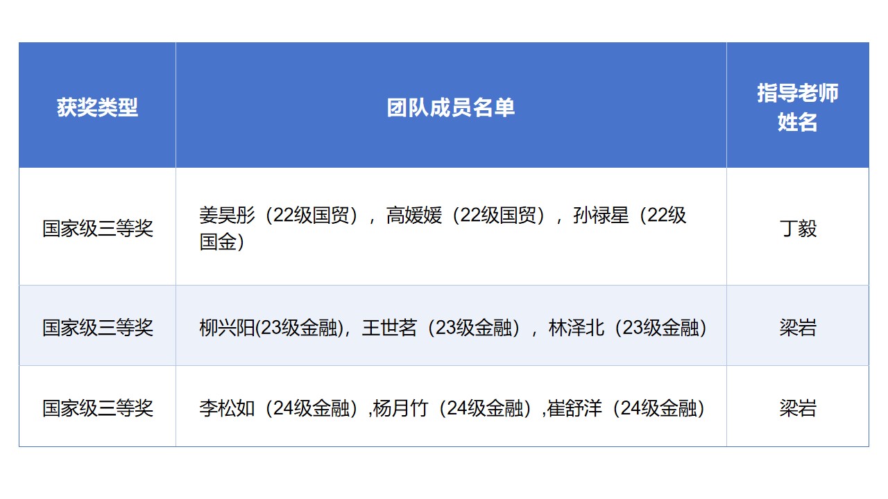 此次优异成绩的取得,不仅是对我院学子过硬专业素养与卓越实践能力的充分肯定,更是学院深化教育教学改革、践行“以赛促教、以赛促学、以赛促改”育人理念的丰硕成果。 通过大赛的实战平台,学子们将理论知识与市场实践深度融合,有效提升了金融素养、理性投资意识和风险防范能力,为未来职业发展奠定了坚实基础。 再次向所有载誉而归的同学们以及辛勤付出的指导老师们致以最热烈的祝贺和衷心的感谢!期待更多经管法学子在未来的舞台上再创辉煌!