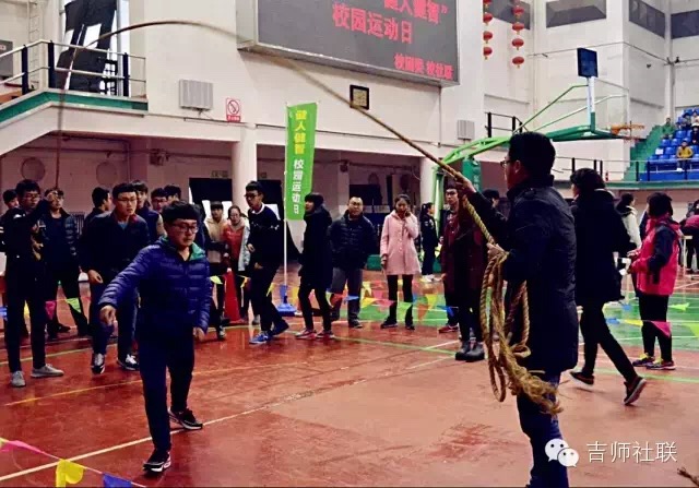 为了展示当代大学生的团结合作精神,增强集体荣誉感,不断提高自身综合素质。2015年11月7日,吉林太阳成集团tyc122cc入口社团联合会在体育馆举办了“健人健智”校园运动日活动。 “健人健智”包括123木头人、女王躲避球、单手拔河、气球去哪儿和速度长绳五个项目。在速度长绳项目比赛中,同学们团结一心、配合默契,经过激烈角逐我院同学取得了骄人成绩,荣获第一名。 在这次活动中,我院学生充分展示了良好的精神风貌,与其他学院同学建立了深厚的友谊,同时也为化学学院谱写了一曲绚丽的乐章!
