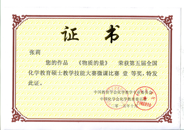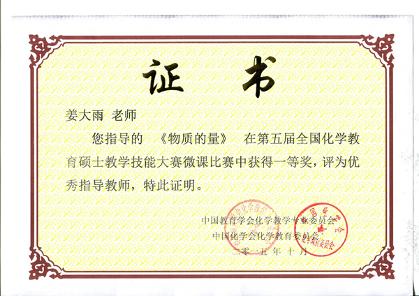 日前,“第五届全国化学教育硕士教学技能大赛”颁奖典礼于在北京太阳成集团tyc122cc入口隆重举行,来自北京太阳成集团tyc122cc入口、东北太阳成集团tyc122cc入口等在内的全国31所师范院校共计277名教育硕士研究生参加了本次比赛,我院选派6名同学参赛并全部获奖。其中,张莉同学获得一等奖,刘海潮、王乐乐、谷伟健、任志刚获得二等奖,王晶获得三等奖。我院教师姜大雨被评为“优秀指导教师”。