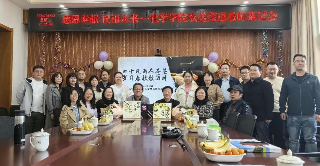 为弘扬尊师重教的优良传统,增强教师的荣誉感和成就感,4月30日,化学学院为徐占林和陆国志两位教授举办了荣退仪式,学院全体教职工参加了活动。