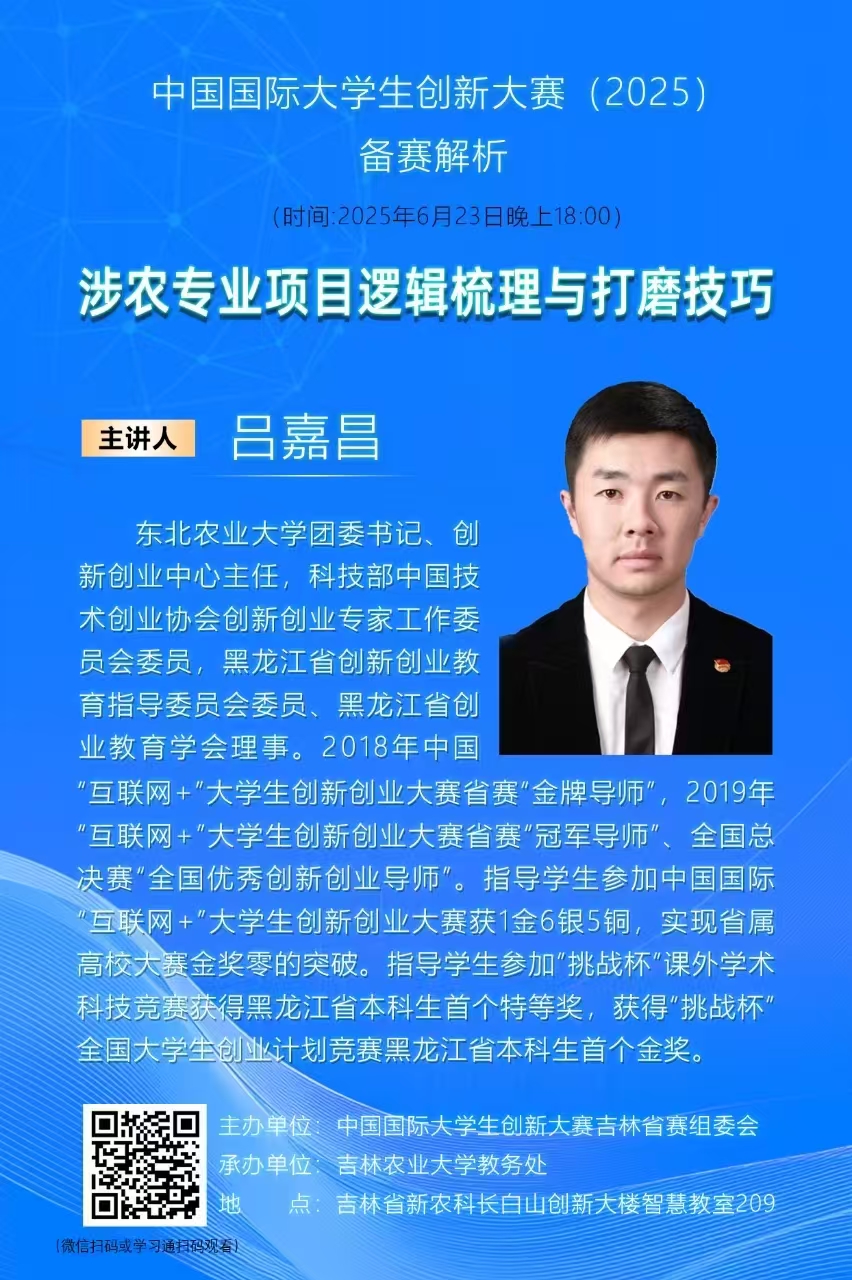 【讲座预告】中国国际大学生创新大赛(2025)备赛解析:涉农专业项目逻辑梳理与打磨技巧