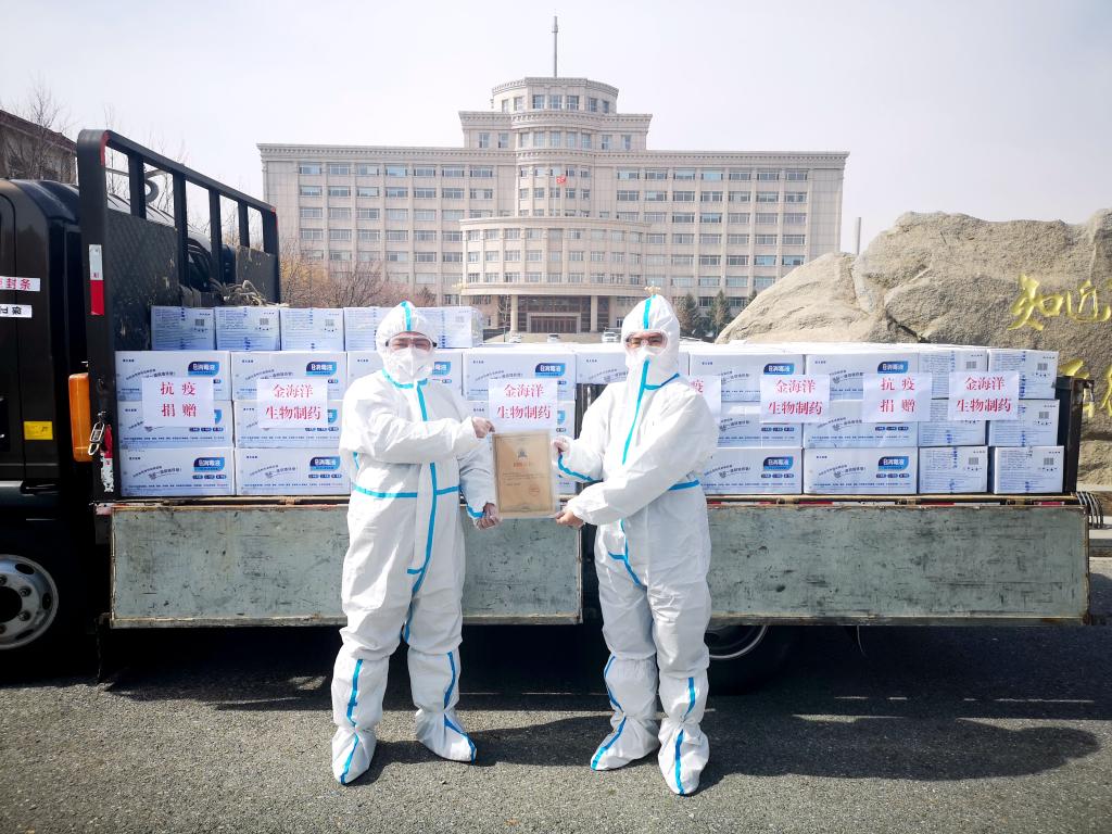 吉林省金海洋生物制药有限公司向我校捐赠防疫物资