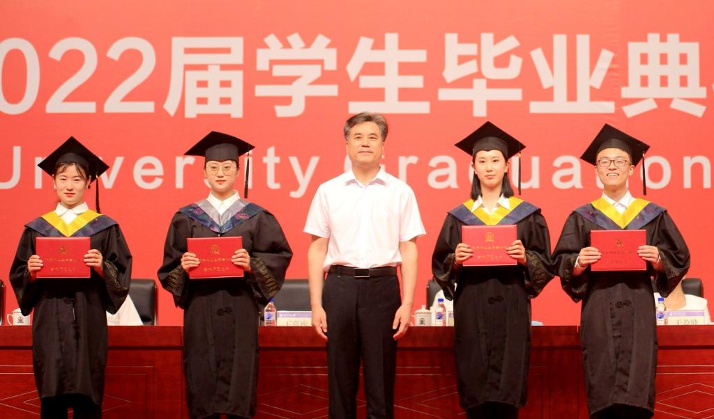 杨小天代表学校,向5766名本科生、硕士生、博士生顺利完成学业表示热烈祝贺!向循循善诱、诲人不倦的教师们,向不辞辛劳、无悔付出的父母们,向朝夕相伴、共同成长的同学们,向默默无闻、坚守岗位的工勤人员,向疫情期间共同守护校园的师生员工,致以最衷心的感谢和崇高的敬意!他饱含深情地说,作为校长,在欣慰地看着你们毕业的同时,更期望看到你们美好的未来,并用三句话与大家共勉。一是以终为始,慷慨激昂再出发。一个时期的终结,代表着另一个时期的开启,你们将进入一所名叫“社会”的大学。在中华民族走向伟大复兴的新时代中,你们将是实现第二个百年奋斗目标的中流砥柱。请牢记“士不可以不弘毅,任重而道远”,向着中华民族伟大复兴的中国梦,昂扬精神,整装启程。二是以文化己,知行合一走天下。在社会中成长,必须“好学”,要让学习成为自己生存、发展的过程。要始终保持对知识渴求的欲望,善于学习、善于思考、勇于实践,在繁杂信息的冲压下,把握自己,从容应对,赢得社会的认同,成就自己的事业。三是以德润心,修身齐家兴中华。要树立正确的世界观、人生观和价值观,形成完善的人格和良好的品德,保持正确的道德认知、自觉的道德养成和积极的道德实践。要把个人成长成才融入祖国和人民的伟大事业之中,创造无愧于人民、无愧于时代的业绩,真正实现高尚的人生价值。