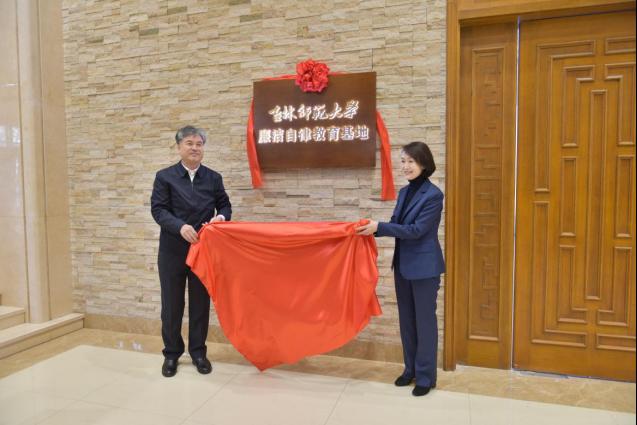 王喜库在讲话时指出,近年来,学校党委紧紧围绕“立德树人”根本任务,积极探索“不想腐”工作路径,着力强化大学生规矩、廉洁、自律意识,使青年一代在思想深处根植“不想腐”的自觉,开展廉洁自律教育进思政课堂工作,构建以廉育人新模式。作为廉洁自律进课堂的延伸,设立廉洁自律教育基地,面向全体党员干部、教职员工、青年学生开展廉洁自律教育活动,为实现为党育人、为国育才的初心使命提供坚强保证。今后,要充分利用好廉洁自律教育基地资源,新提拔干部、新入党党员、新入职教师,都要纳入廉洁自律教育范围;高师培训中心、教师发展中心要把廉洁自律教育纳入相应培训项目;要在廉洁自律教育上持续发力,做大做强,力争在国家级教学成果奖上取得突破。