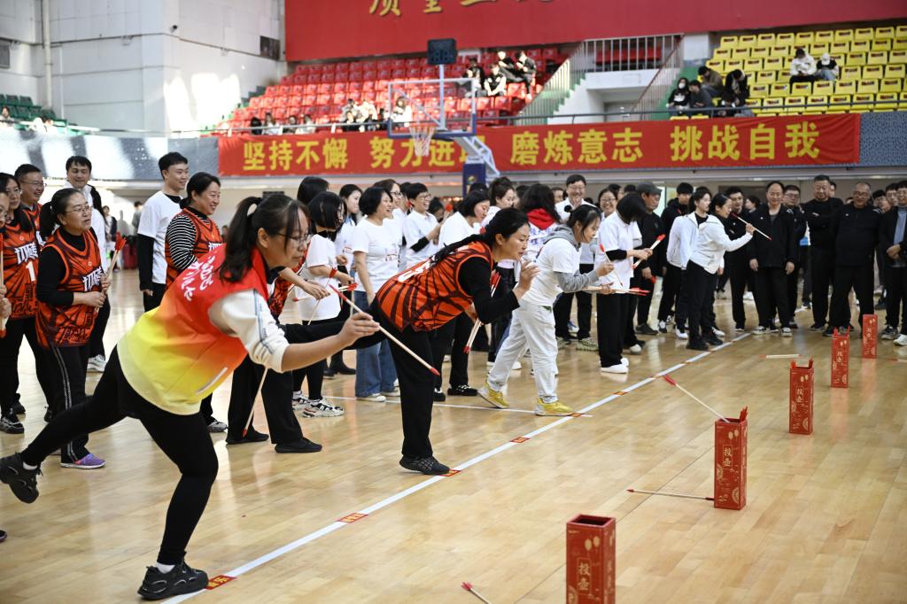 本次教职工趣味运动会巧妙地将“趣味”融入“比赛”,既是力量和智慧的角逐,更是个人竞技水平和团队协作能力的较量。比赛现场气氛热烈,参赛教职工在一分钟跳绳、一分钟毽球、穿衣接力、陆地赛龙舟、企鹅漫步、投壶、同心击鼓7个趣味项目中配合默契、奋勇争先,在集体跳绳项目中表现同样精彩,赢得现场观众阵阵掌声,充分彰显了新时代吉师人的活力和风采。