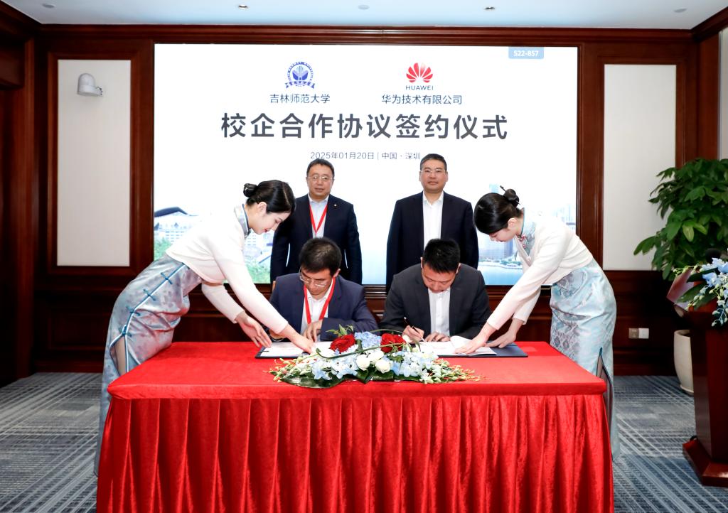 近日,学校与华为技术有限公司校企合作协议签约仪式在华为技术有限公司总部深圳坂田基地举行。校长杨小天,党委常委、副校长左今明;华为技术有限公司公共事业系统部副总裁李声阳,华为吉林政企业务副总经理战亮出席签约仪式。我校与华为技术有限公司相关职能部门负责人参加签约仪式。