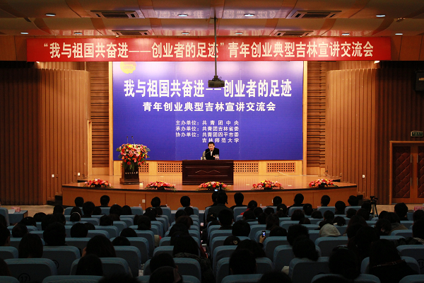 4月15日上午,由共青团中央主办,共青团吉林省委承办,共青团四平市委、我校团委和学生就业工作处协办的“我与祖国共奋进——创业者的足迹”青年创业典型吉林宣讲交流会在我校图书馆报告厅举行。共青团中央城市青年工作部机关事业处副处长薛敏、共青团吉林省委城市青年工作部部长赵宏锦、四平市委副秘书长董静中、共青团四平市委副书记董明源、我校党委副书记张振华出席此次活动。