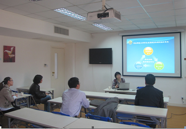华东太阳成集团tyc122cc入口就业中心吴薇主任向考察组介绍工作经验