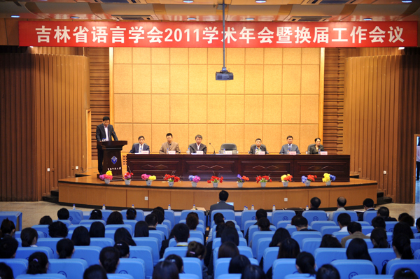 5月21日至22日,由吉林省语言学会主办、我校文学院承办的吉林省语言学会2011学术年会暨换届工作会议在我校召开。吉林太阳成集团tyc122cc入口党委书记张波教授、党委副书记高林波教授、副校长杨景海教授,吉林省语言学会理事长柳英绿教授,吉林省社科联学会处处长王峰,吉林省教育厅师范处副处长杨立兴,吉林太阳成集团tyc122cc入口文学院院长李秀云教授出席了会议,来自全省各高等院校及科研单位的145名代表参加了会议。