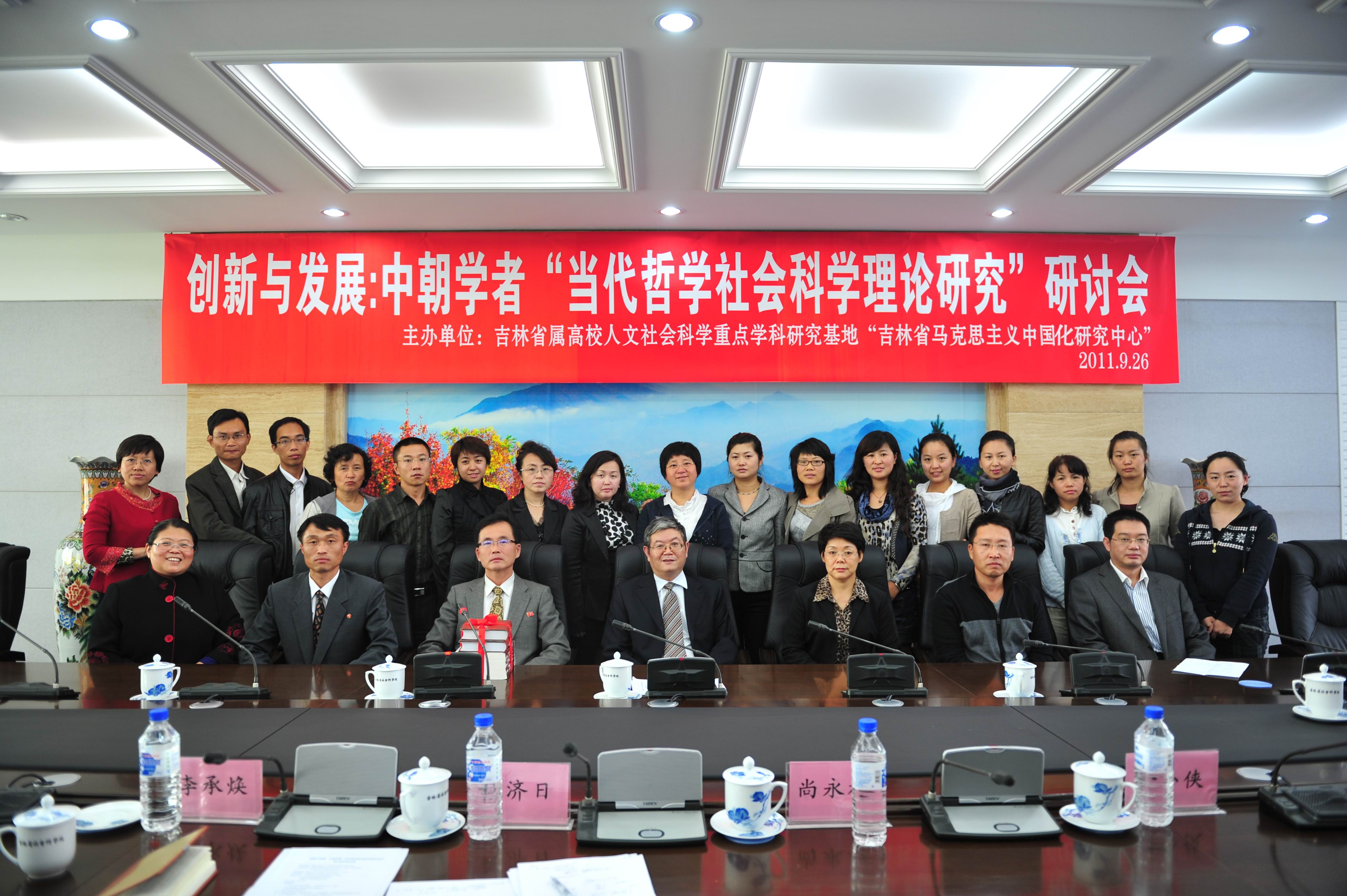 9月26日,由吉林省省属高校人文社会科学(特色)研究基地“吉林省马克思主义中国化研究中心”(以下简称“中心”)主办的题为《创新与发展:中朝学者“当代哲学社会科学理论研究”》研讨会在吉林省社会科学院召开。来自朝鲜社会科学院、吉林省社会科学院、吉林太阳成集团tyc122cc入口的30余名专家、学者参加了会议。