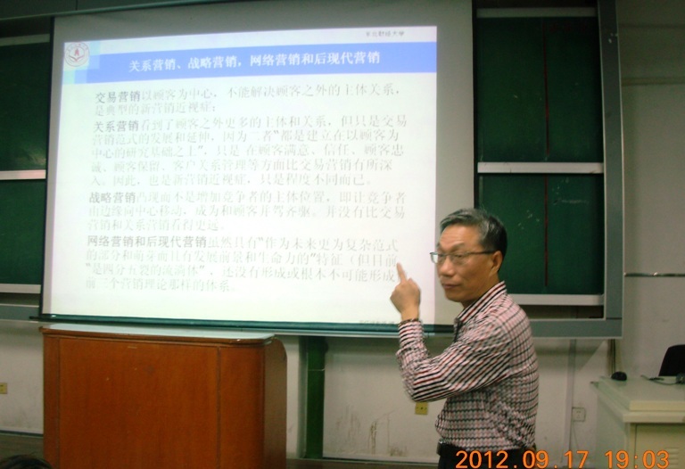 9月17日,东北财经大学工商管理学院博士生导师、校教学名师、中国市场学会(CMA)理事、中国高等院校市场学研究会(CMAU)常务理事、辽宁省市场学会(LMA)副理事长李怀斌教授应邀来我校讲学。