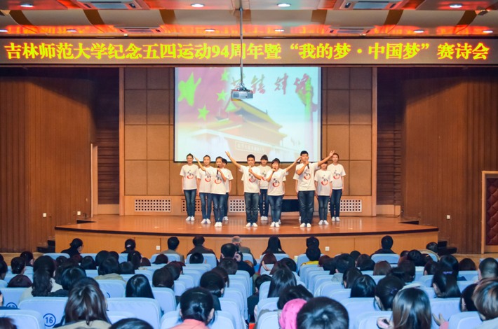 纪念五四运动94周年暨“我的梦?中国梦”赛诗会是学校党委统一部署、校团委组织开展的“我的梦?中国梦”主题教育系列活动之一。