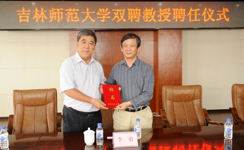6月7日上午,我校在第一教学楼八楼会议室举行双聘教授聘任仪式,聘请吉林大学博士生导师、国家级教学名师李勇教授为我校双聘教授。学校党委书记张波、副校长杨景海出席聘任仪式,张波为李勇颁发了聘书。数学学院部分教师参加了聘任仪式。