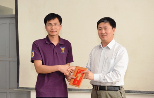 仪式上,杨景海为2013届硕士研究生王健和李微颁发了获奖证书及奖金,并勉励获奖同学努力学习,不断提高科研水平。