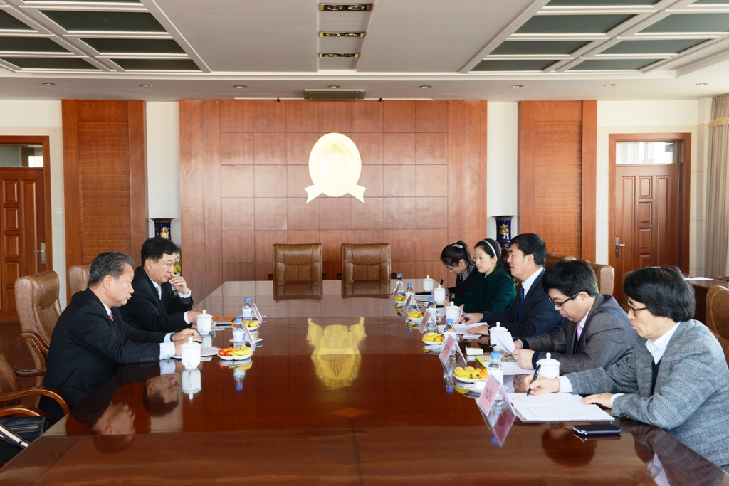 11月14日至17日,韩国白松高等学校理事长宋龙云教授,校长金圣起教授一行应邀来我校进行友好访问。校长杨景海在第一教学楼八楼会议室会见了来访客人。