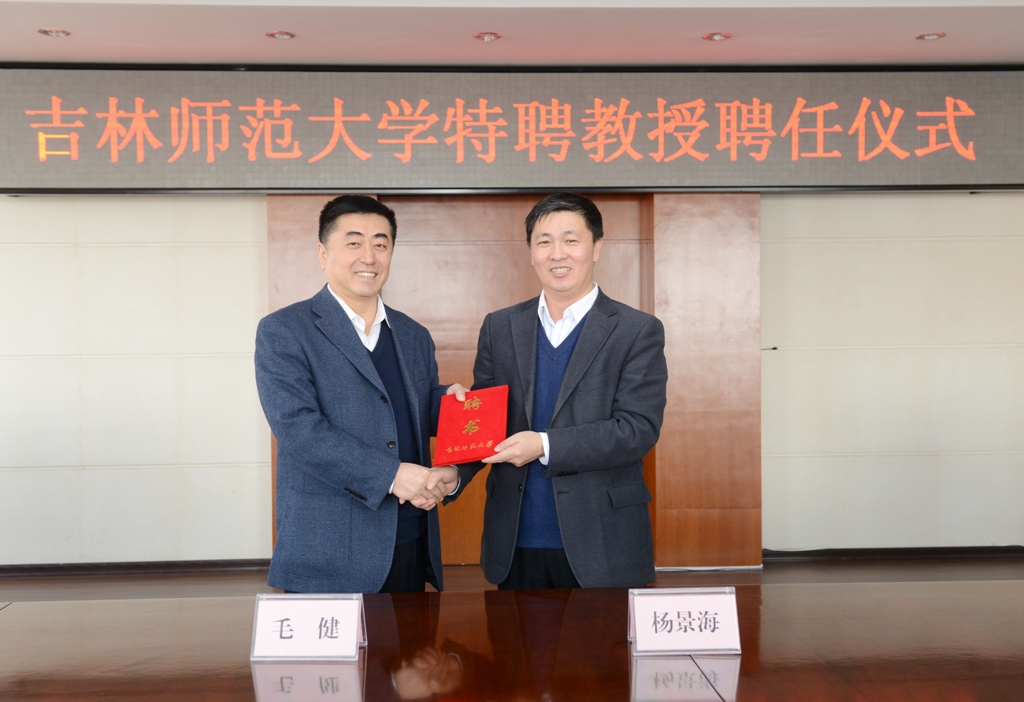 3月13日上午,我校在第一教学楼八楼会议室举行双聘教授聘任仪式,聘请吉林省人大教科文卫委主任委员毛健为我校双聘教授。校党委书记张波、校长杨景海出席聘任仪式,杨景海为毛健颁发了聘书。相关部门负责人及经济学院部分教师参加了聘任仪式。