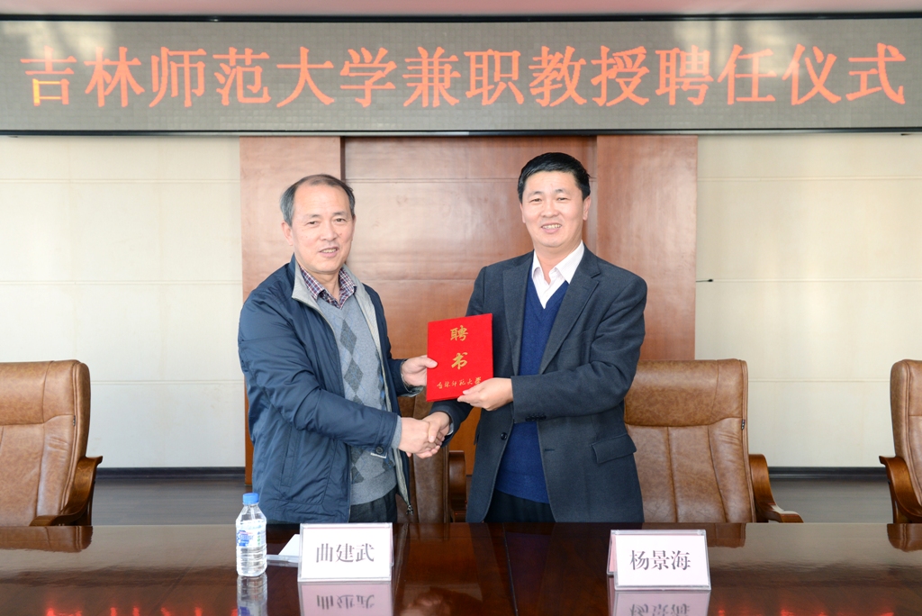 11月21日,学校在第一教学楼八楼会议室举行兼职教授聘任仪式,聘任二级教授、博士生导师、大连海事大学曲建武教授为我校兼职教授。校长杨景海、校党委副书记高林波出席聘任仪式。杨景海致欢迎辞并为曲建武教授颁发聘书。高林波主持聘任仪式。学生工作部(处)负责人及部分学院党总支副书记、学工办主任参加了聘任仪式。