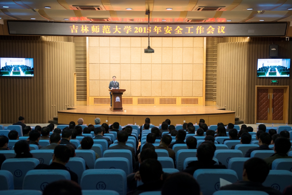 3月25日,学校在图书馆报告厅召开2015年安全工作会议,大会通过视频会议系统设四平校区和长春校区两个会场。校党委书记张波,校长杨景海,校党委副书记高林波,副校长祖国华、张勇、李海波,纪委书记刘银善出席会议。学校各学院院长、书记、主管学生工作副书记,学校各部门主要负责人参加会议。