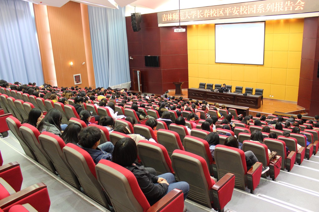为落实学校关于2015年“春季行动”工作方案,创建和谐平安校园,全面提升学生的安全意识和法治观念,4月14日,我校在长春校区文化产业研发大楼报告厅举办法制教育专题报告会。本次报告会是我校长春校区平安校园系列活动之一。长春市公安局法制支队法规科科长王永警官结合自己的工作经历,通过精彩生动的案例,从当前大学生犯罪特点、成因、防范措施以及如何提高法治意识等几个角度,指导同学们从防抢、防盗、防骗、防毒等方面提高自我保护意识和辨别是非的能力。讲座结束后,同学们纷纷表示很受警醒,受益匪浅。