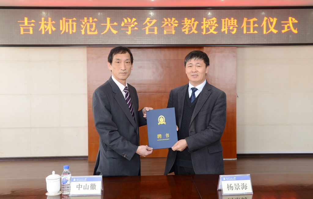 4月18日,我校在第一教学楼八楼会议室举行了名誉教授聘任仪式,聘任日本奈良女子大学中山徹为我校名誉教授。校长杨景海出席聘任仪式并为中山徹教授颁发聘书。国际交流与合作处、经济学院等相关人员参加了聘任仪式。