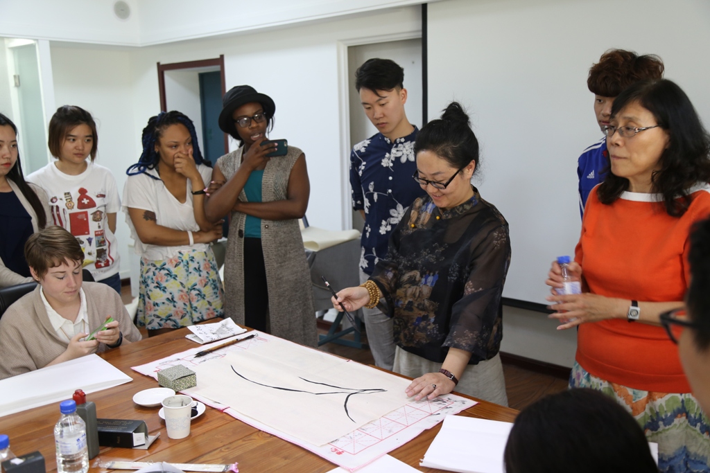 本次夏令营活动还聘请我校知名教授主讲中国传统文化课,李秀云老师的剪纸、梁怀学老师的软笔书法和陈思老师的中国画深受美国学生的欢迎。在参观福文化博物馆参观后,各位团组成员从不同角度认识到了中国“福”文化的深刻含义。