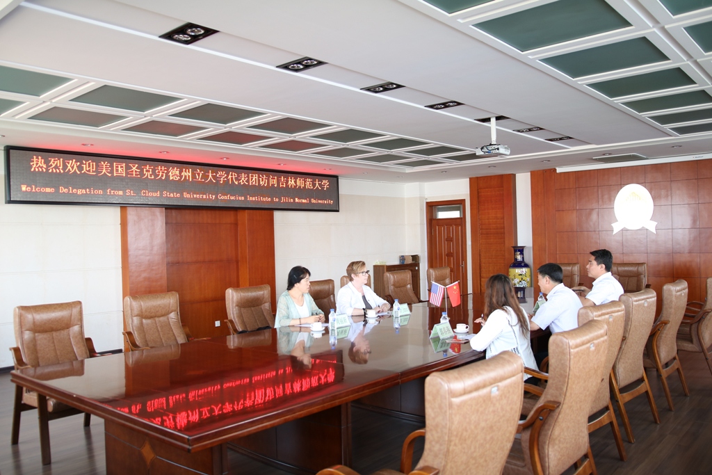 6月13日,美国圣克劳德州立大学孔子学院院长Kathy Johnson女士、中方院长周丽新、博士项目中心主任John Eller博士、索克莱匹兹莱斯小学Susan Paasch校长在吉林省对外汉语教学培训中心项目负责人的陪同下,对我校进行了友好访问。校长杨景海在第一教学楼八楼会议室会见了来访客人。