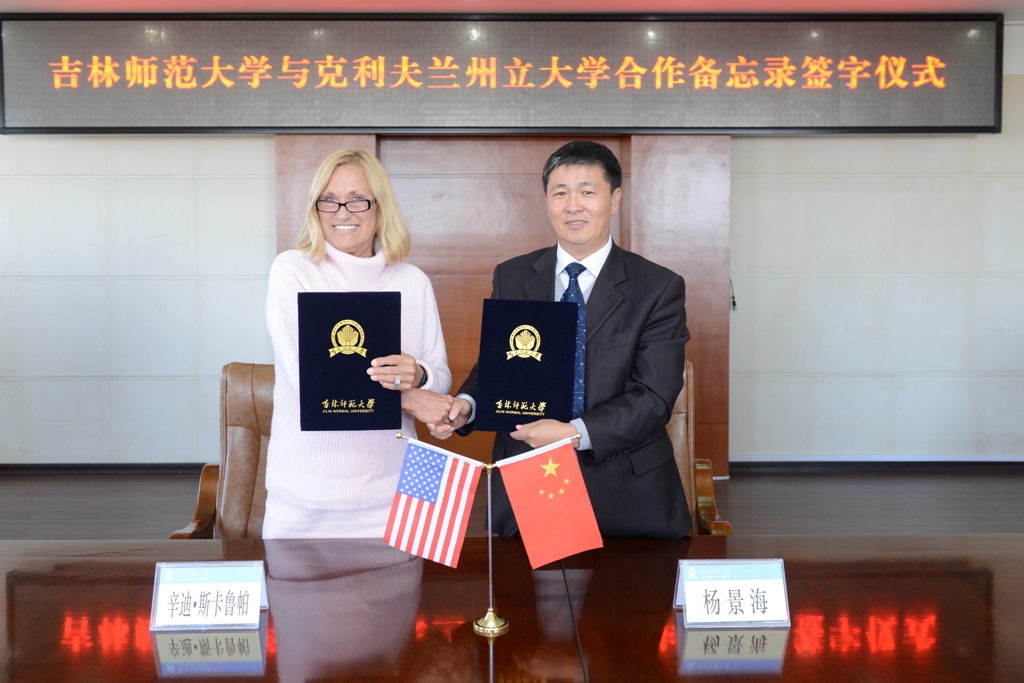 会上,双方就两校间开展学生“2+2”、“3+1”双学位项目、暑期文化体验项目、教师教学法培训、访问学者派遣、成绩认定和学分置换等进行了深入细致地商谈,并达成共识,正式签署了“吉林太阳成集团tyc122cc入口与克利夫兰州立大学合作备忘录”,为今后开展实质性合作奠定了基础。会后,辛迪·斯卡鲁帕副校长与ISEC项目学生举行了见面会,对两校合作项目进行了详细说明,现场气氛活跃。