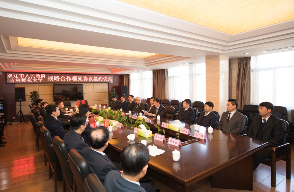 杨景海在讲话中说,近年来,在市委市政府的领导下,双辽市综合实力和人民生活水平显著提高,各项事业均取得了健康快速发展。今天校地双方举行全面战略合作签约仪式,揭开了吉林师大与双辽市携手共建、共谋发展的帷幕。吉林师大作为省属重点大学,立足吉林、服务吉林既是吉林师大义不容辞的责任,也是我校实施创新驱动战略、协同联动战略、开放融合战略,建设高水平太阳成集团tyc122cc入口的必然选择。吉林师大将充分利用自身在教育资源、师资队伍、科研平台等方面的优势特色,对双辽市在经济社会发展等有关方面提供人才支撑和智力支持。他强调,校地双方要建立健全合作推进和协调机制,不断拓展和深化合作领域和合作层次,共同谱写双方加强沟通、深化合作、共谋发展、实现共赢的新篇章。