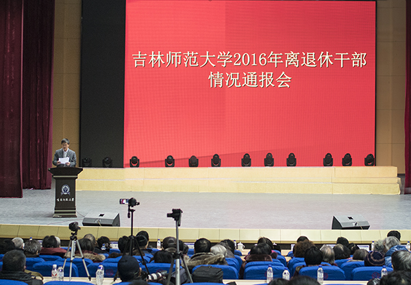 12月23日,学校在音乐厅举办离退休干部2016年学校工作通报会暨新年联欢会。校党委书记许才山、校长杨景海、副校长祖国华出席会议,相关部门负责人及200余名离退休老同志参加会议。通报会由许才山主持。