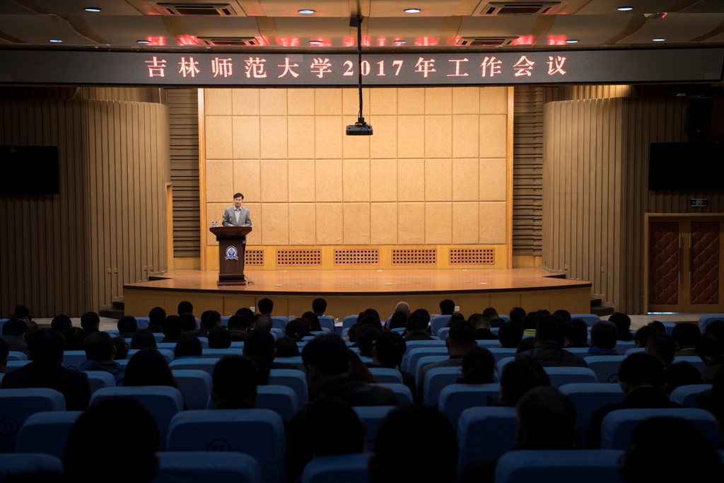 针对2017年的重点工作,他提出七点要求。第一,坚持改革创新,提升办学治校能力。一是强化目标管理,做好全校第二轮目标责任书制定工作。二是强化民主管理,召开好学校第三次教代会。三是强化科学管理,构建学校内部治理体系。四是明确办学定位,推动转型发展,突出应用研究导向来谋划工作,推动学校发展。第二,坚持立德树人,提高人才培养能力。一是深化本科教育教学综合改革,高质量迎接省教育厅对各专业的评估工作。二是推进研究生教育综合改革。试点建设5-10门研究生双语课程,推进研究生培养国际化。三是加强创新创业教育。加强创新创业实践基地和创客空间建设。全面推进“大创计划”。第三,坚持人才强校,加强师资队伍建设。一是加强师资队伍的引进培养。采取灵活引进政策,做好人才引进工作。二是全面深化人事制度改革。将人才的“势能”有效转化为教学、科研工作的“动能”。第四,坚持内涵发展,推动“双一流”建设。一是统筹推进学科发展。力争进入省“双一流”“双高”建设行列。二是加强学位点建设。要进一步加强“特博项目”建设。第五,坚持协同创新,增强服务社会能力。一是持续增强科研实力。实行绩效考核管理。二是深化协同育人模式。完善科教结合、产教融合的协同育人机制。三是积极推动成果转化。主动发挥学校优势,筹建好吉林发展战略研究院、吉林省社科院四平分院等新型智库。积极推进四平红嘴大学科技园升级建设。第六,坚持开放办学,加快教育国际化进程。一是全面落实学校教育国际化工作会议精神。二是提升国际化质量和水平。第七,坚持内外联动,夯实办学基础条件。一是加强基建重点项目建设。力争打造精品优质工程。二是多方筹措增加办学收入。继续做强基础教育优质品牌。三是全面启动60周年校庆筹备工作。扎实推进筹备工作。他最后说,吉林太阳成集团tyc122cc入口正处在历史性关键时刻。站在建设高水平大学的新起点上,让我们继续登高望远谋发展,踏石留痕干事业,依靠敦实的积累、不懈的追求和集体的智慧,共同开创吉林师大更加美好的明天。