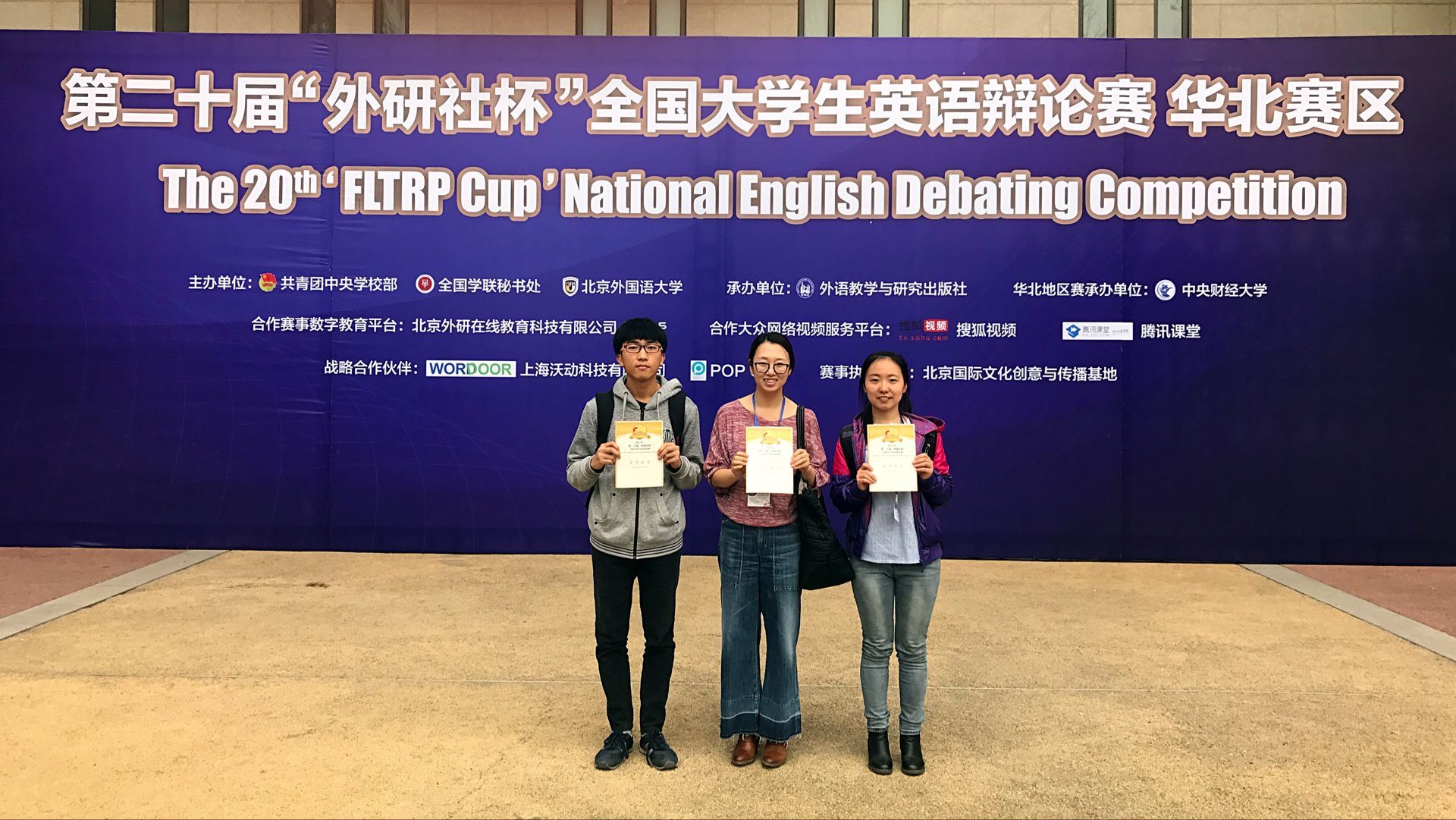 近日,由共青团中央、全国学联、北京外国语大学主办,外语教学与研究出版社承办的第二十届“外研社杯”全国大学生英语辩论赛(华北赛区)在中央财经大学落下帷幕,共有100余所院校参加。外国语学院学生郭俊铭、尹相钰(指导教师:刘冬霞)表现优异,荣获三等奖。