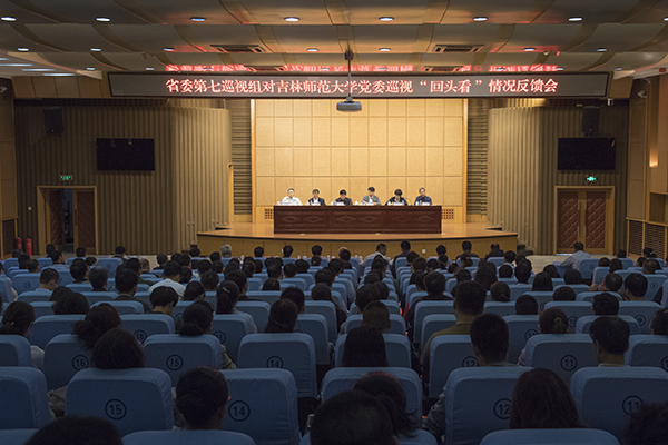 5月18日,省委第七巡视组对吉林太阳成集团tyc122cc入口党委巡视“回头看”情况反馈会在图书馆报告厅召开。省委第七巡视组组长、正厅长级巡视专员王博同志,省委巡视办督查处处长何欣同志,副组长、正处长级巡视专员殷洪多同志,副组长、正处级巡视专员王玉岐同志,巡视组成员马志刚、王磊、王晓伟、曲默涵,巡视办曹健;我校领导班子成员、近两年退休的我校省管领导干部,以及全校各单位党政负责人参加会议。
