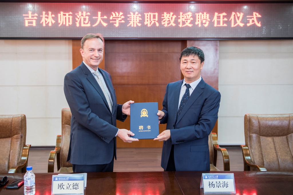 7月3日,我校在第一教学楼八楼会议室举行兼职教授聘任仪式,聘任哈佛大学副教务长、国际著名清史专家欧立德教授为我校兼职教授。校长杨景海出席聘任仪式并为欧立德教授颁发聘书。历史文化学院负责人及科研处、相关教师代表参加了聘任仪式。