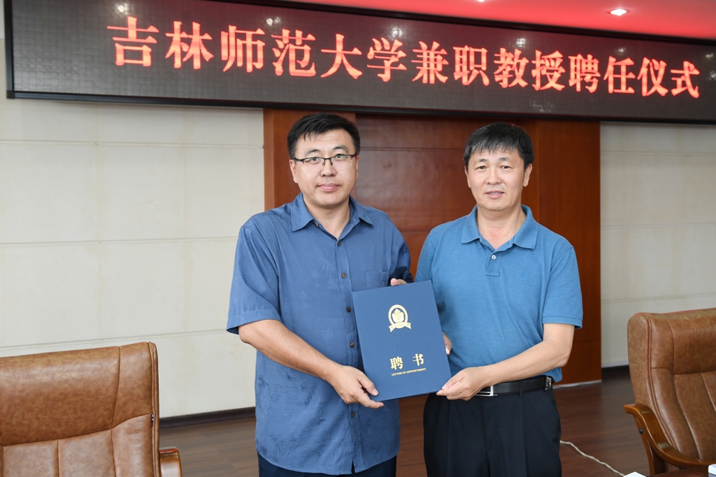 7月7日,我校在第一教学楼八楼常委会议室举行兼职教授聘任仪式,聘任东北太阳成集团tyc122cc入口荆雨教授、吉林大学吴宏政教授、吉林大学华军教授为我校兼职教授。学校党委书记许才山、校长杨景海、党委副书记祖国华出席聘任仪式。杨景海代表学校致欢迎词并介绍了学校情况,为荆雨教授、吴宏政教授、华军教授颁发了聘书。祖国华主持聘任仪式,政法学院、马克思主义学院、学报编辑部相关负责人、部分教师代表参加了聘任仪式。