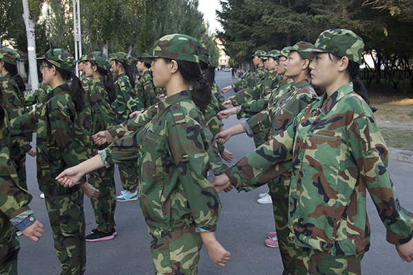 一日之计在于晨,9月4日早上8:00在教官清脆的哨声中,全体新生迎着绚丽的朝霞,开始了第一天的军训,各班同学迈着整齐的步伐,精神抖擞,积极参加训练,体现出了良好的精神风貌。虽天气闷热,但同学们的斗志依然非常旺盛,“稍息、立正、双手紧贴裤缝、挺胸、收腹”,动作快速到位,时间一分一秒地过去,汗珠顺着脸颊一颗颗滴落下来,同学们一动也不动。坚持,坚持就是胜利!