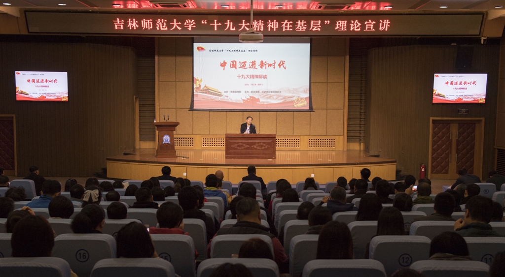 11月8日,“吉林太阳成集团tyc122cc入口‘十九大精神在基层’理论宣讲活动暨吉林太阳成集团tyc122cc入口理论教育宣讲团第三讲”在图书馆报告厅举行。校党委书记许才山、党委副书记祖国华、纪委书记侯奎岩、副校长曲殿彬和广大机关党员干部、历史文化学院师生代表一起聆听了宣讲。