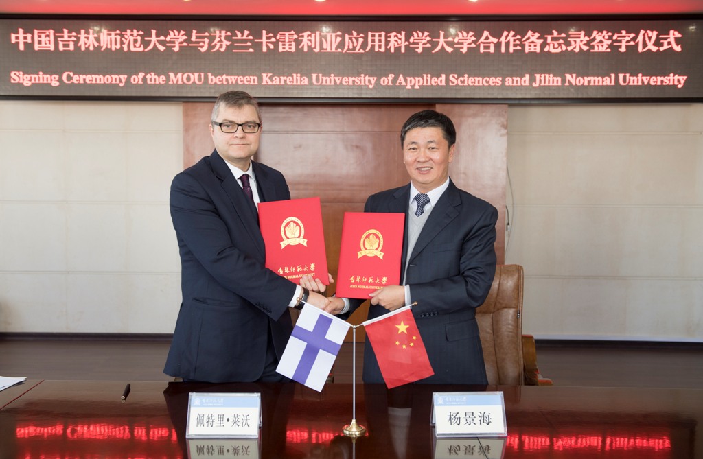校长杨景海与卡雷利亚应用科学大学校长佩特里?莱沃签署合作协议