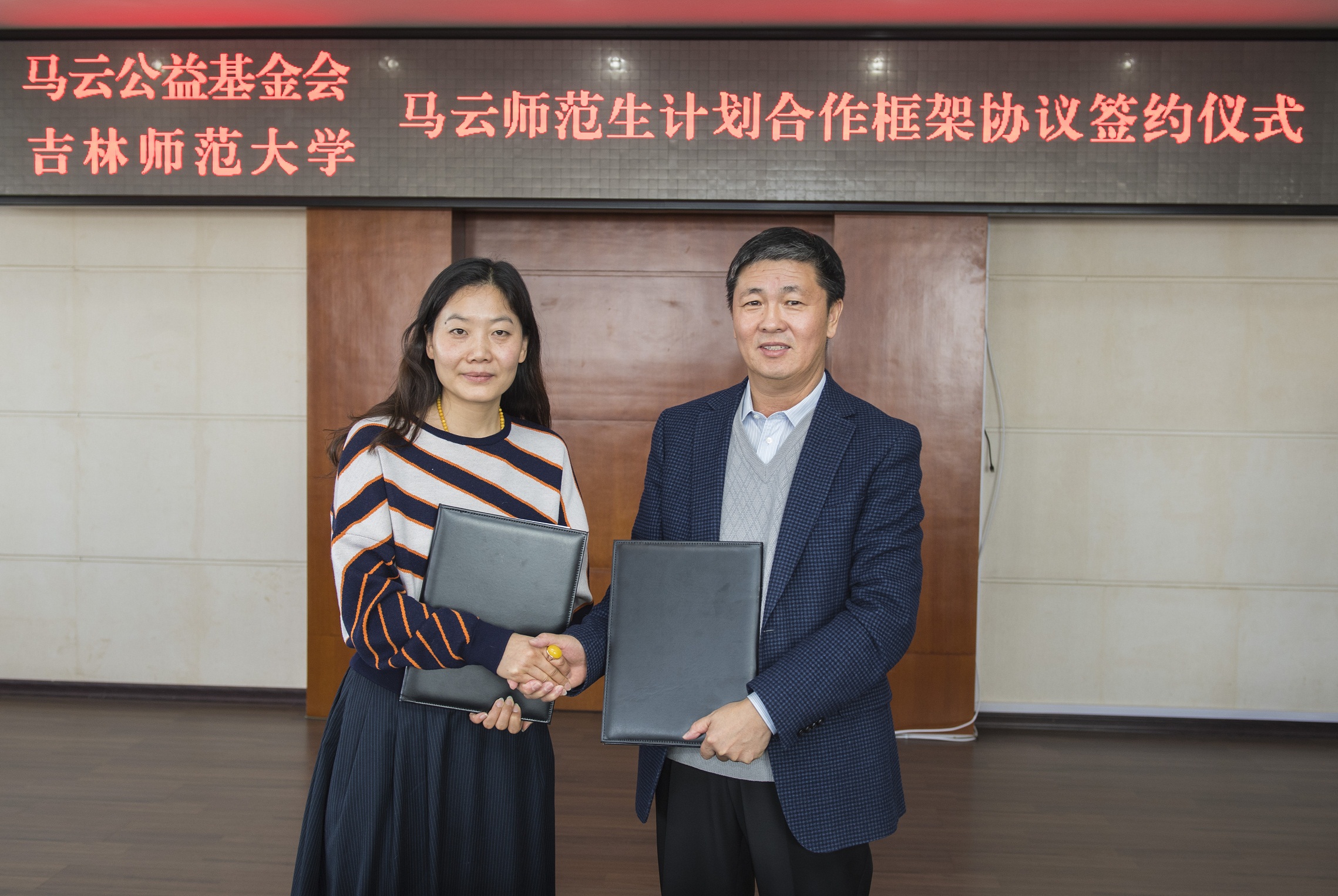 校长杨景海与马云公益基金会执行秘书长于秀红签署合作协议