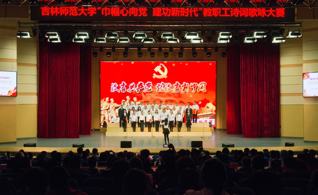 为深入学习贯彻党的十九大精神,喜迎学校60华诞,引领广大教职工不忘初心跟党走,建功立业新时代,近日,我校举办了“巾帼心向党建功新时代”教职工诗词歌咏大赛。学校党委副书记刘万民,党委常委、副校长曲殿彬,四平市妇女联合会主席杨丽红,四平市总工会副主席霍旭东,四平市教科文卫体工会主席李春宝等应邀观看比赛并为获奖单位颁奖。